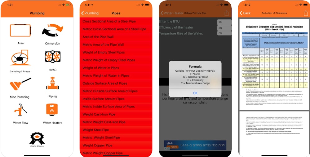 Pipe and fitting is a useful app that helps plumbers determine the accurate amount of materials needed to perform various plumbing tasks. Pipe and Fitting will provide the amount of pipe, dimensions, types of clamps, fittings, and other dimensions needed based on information provided about the job.
